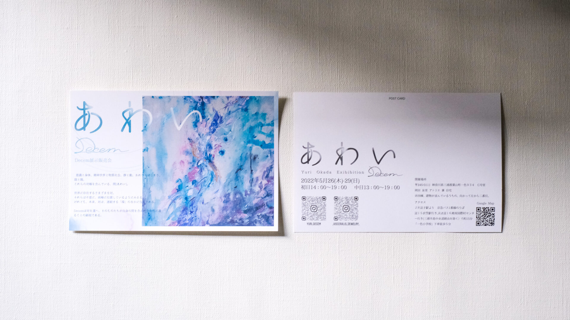展示会の際は、郵送可能なDMを用意しています。郵送をご希望の際は、お問い合わせフォームに宛名、郵便番号、ご住所をお知らせください